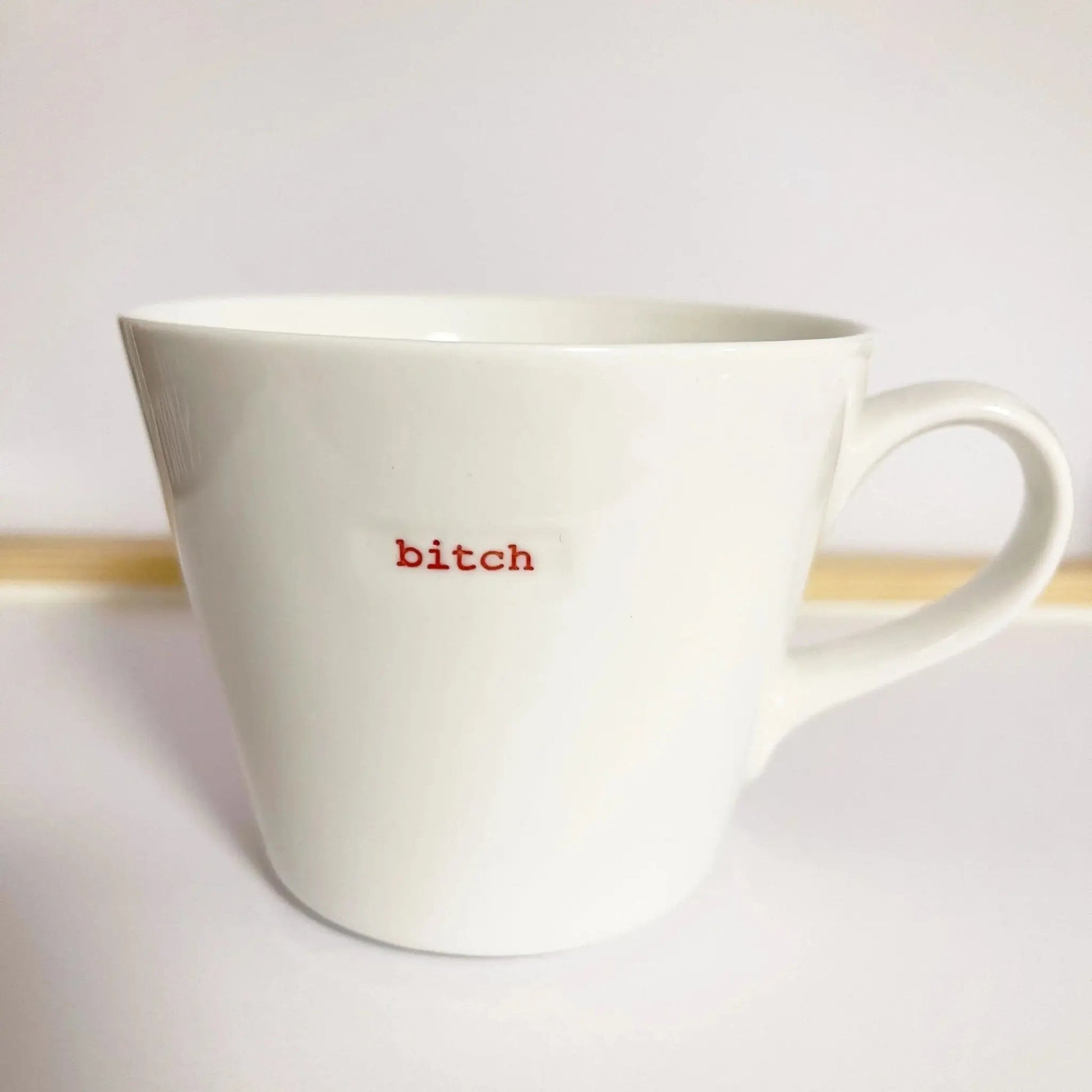 Looking for a cheeky gift for your friend, colleague or family member with a great sense of humour? Hand stamped with the word ‘bitch’ in red typewriter font this rude Keith Brymer Jones medium bucket mug is guaranteed to have them laughing out loud.