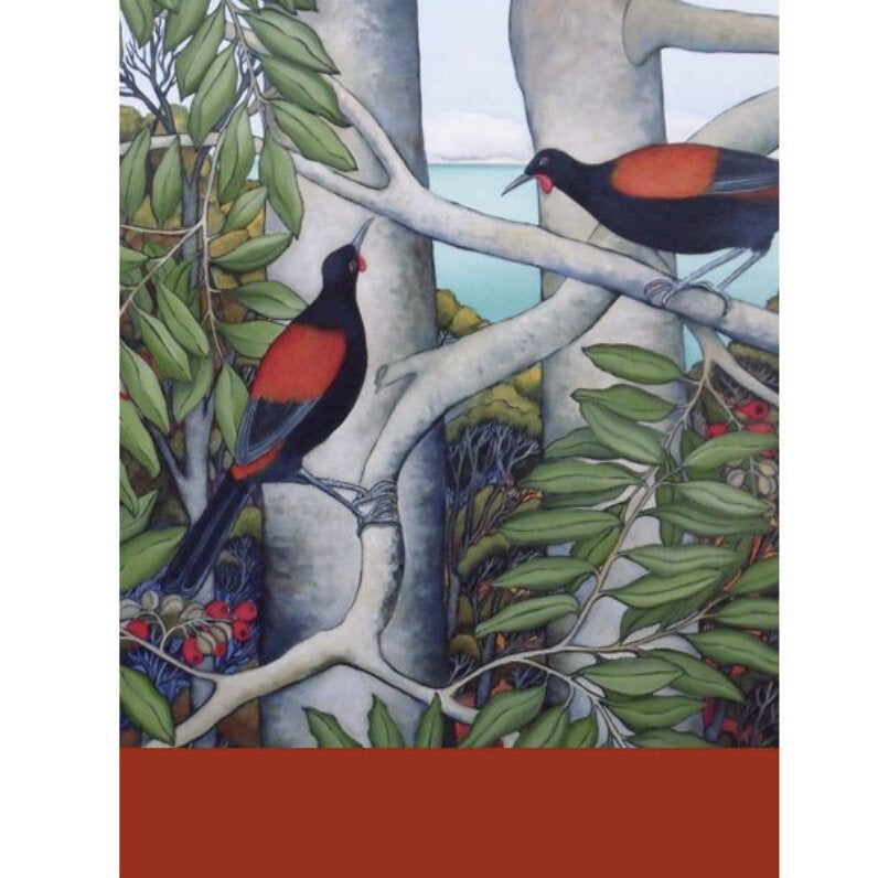 Notepad with a magnetic closure, solid block colour on the inside and a beautiful cover design taken from NZ artist Clare Reilly’s beautiful native bird artworks.