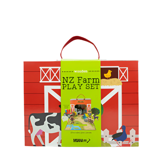 Get ready to play down on the farm with the Moana Road NZ Farm Play Set. This play set includes 13 wooden pieces, from barns to animals, perfect for creating your own farm scene and letting your imagination run wild!