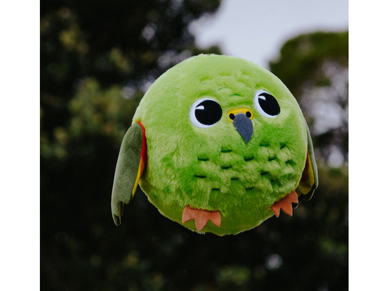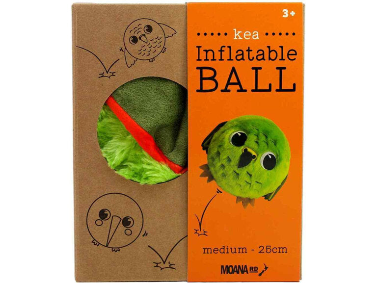 Inflatable ball by Moana Road with plush cover in the design of a kea. Throw, catch and cuddle! This plush, bouncy ball is a fun way for little ones to develop their motor skills.