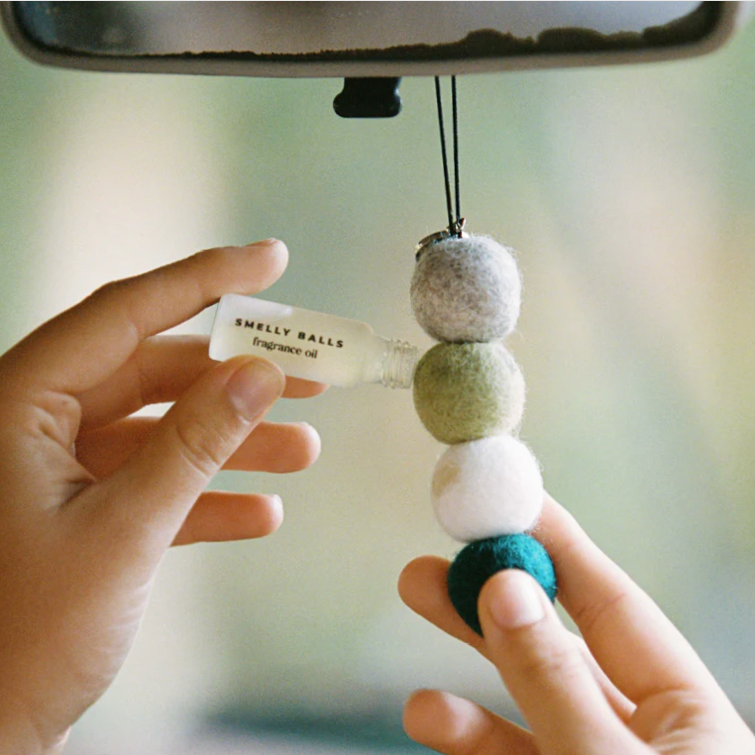 Made to hang in your car from the rear vision mirror, simply top the woollen balls with your favourite fragrant scent to keep your interior smelling fresh. Comes with four unscented Felt Wool Balls with branded charm and elastic string for easy hanging, 5mL fragrance oil of your choice, instructions and bonus postcard together in our little ‘keep pouch’.